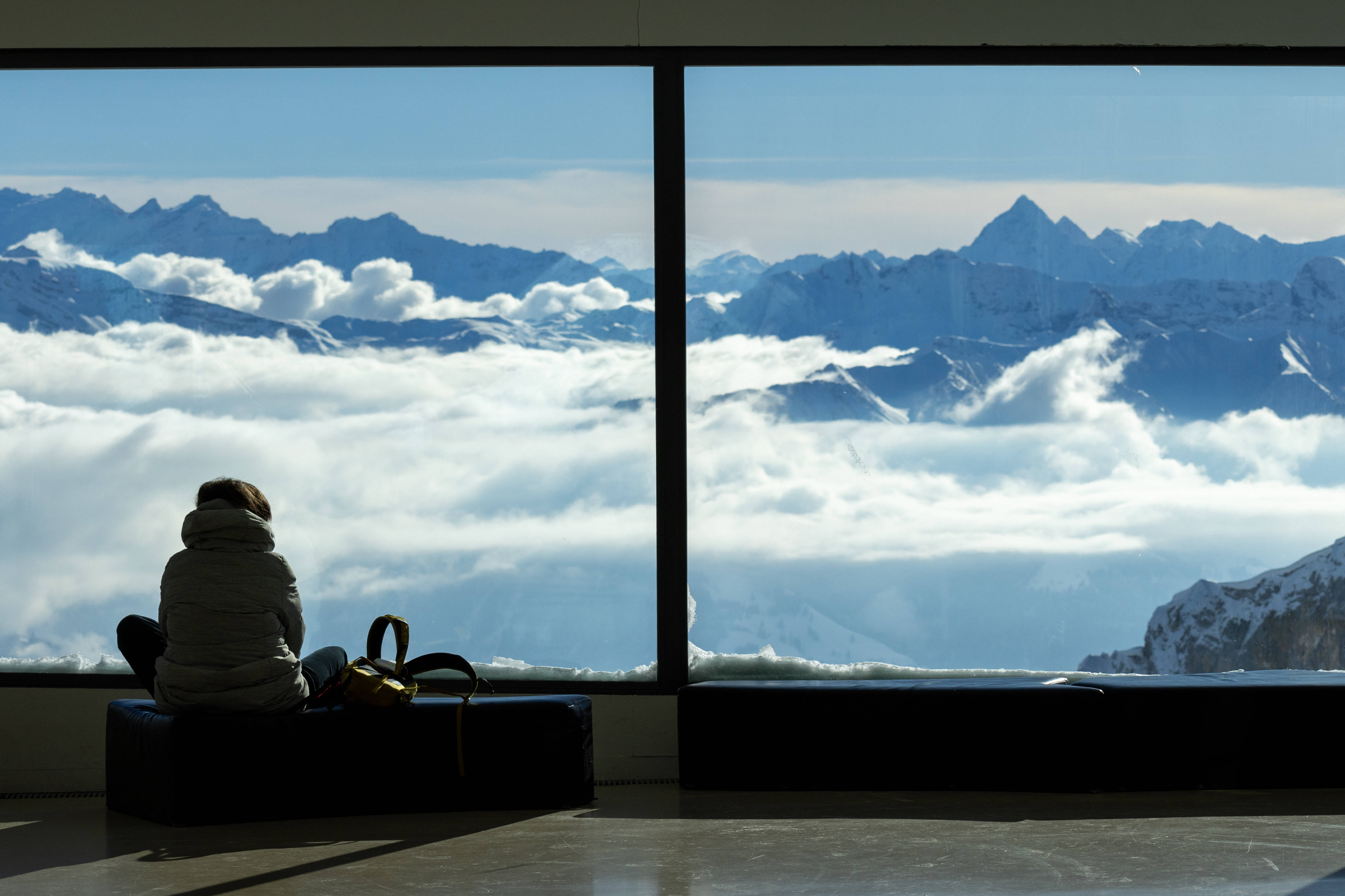 2024年1月19日,一名女子在瑞士皮拉图斯山上欣赏阿尔卑斯山脉景色。新华社记者孟鼎博摄达冈说:“一切都干涸了……就积雪融化情况而言,我们的时节比往常早了接近一个月。”